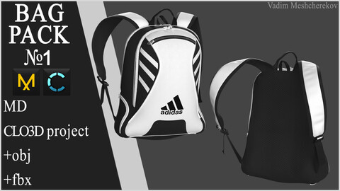 Bag Pack №1. Marvelous Designer / Clo 3D project +obj